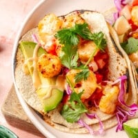 This juicy, spicy homemade Bang Bang Shrimp is stuffed into perfectly charred corn tortillas alongside crunchy shredded cabbage, tomato and avocado slices, and fresh, flavorful cilantro. Start to finish, this shrimp taco recipe takes less than 20 minutes!
